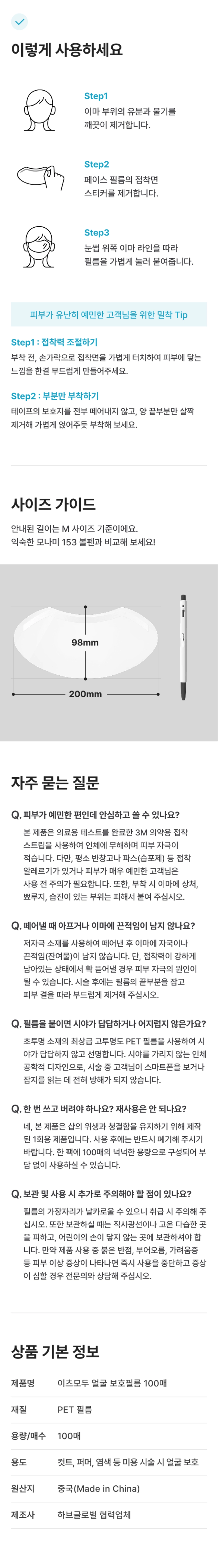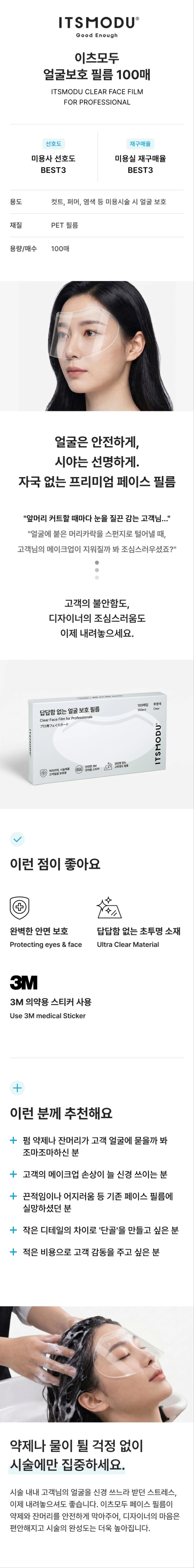 - [미용비품] 이츠모두 얼굴 가리개 투명 보호 페이스필름 100매입