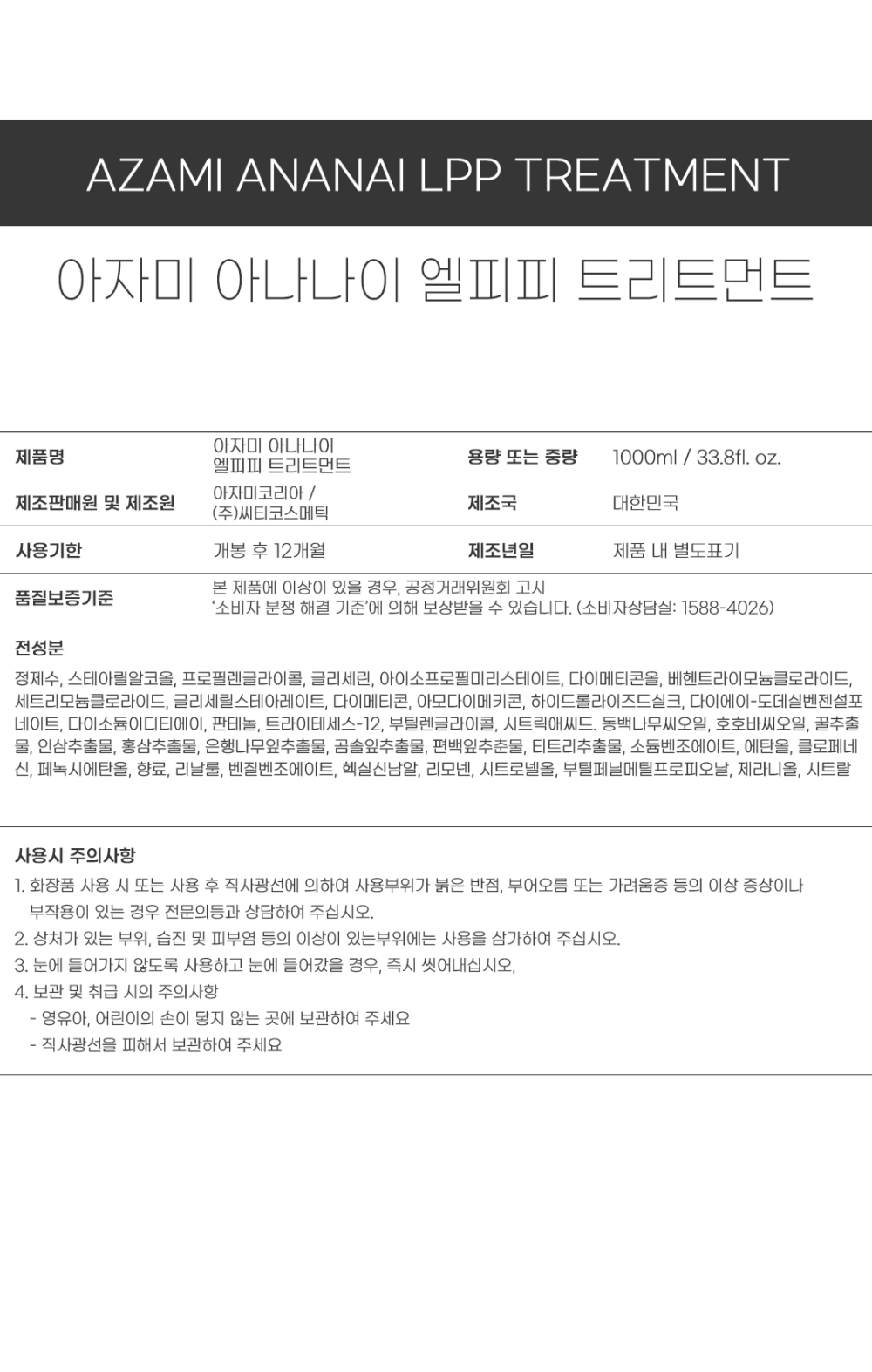 - ★5+1★ [트리트먼트] 아자미 아나나이 엘피피 트리트먼트 1000ml