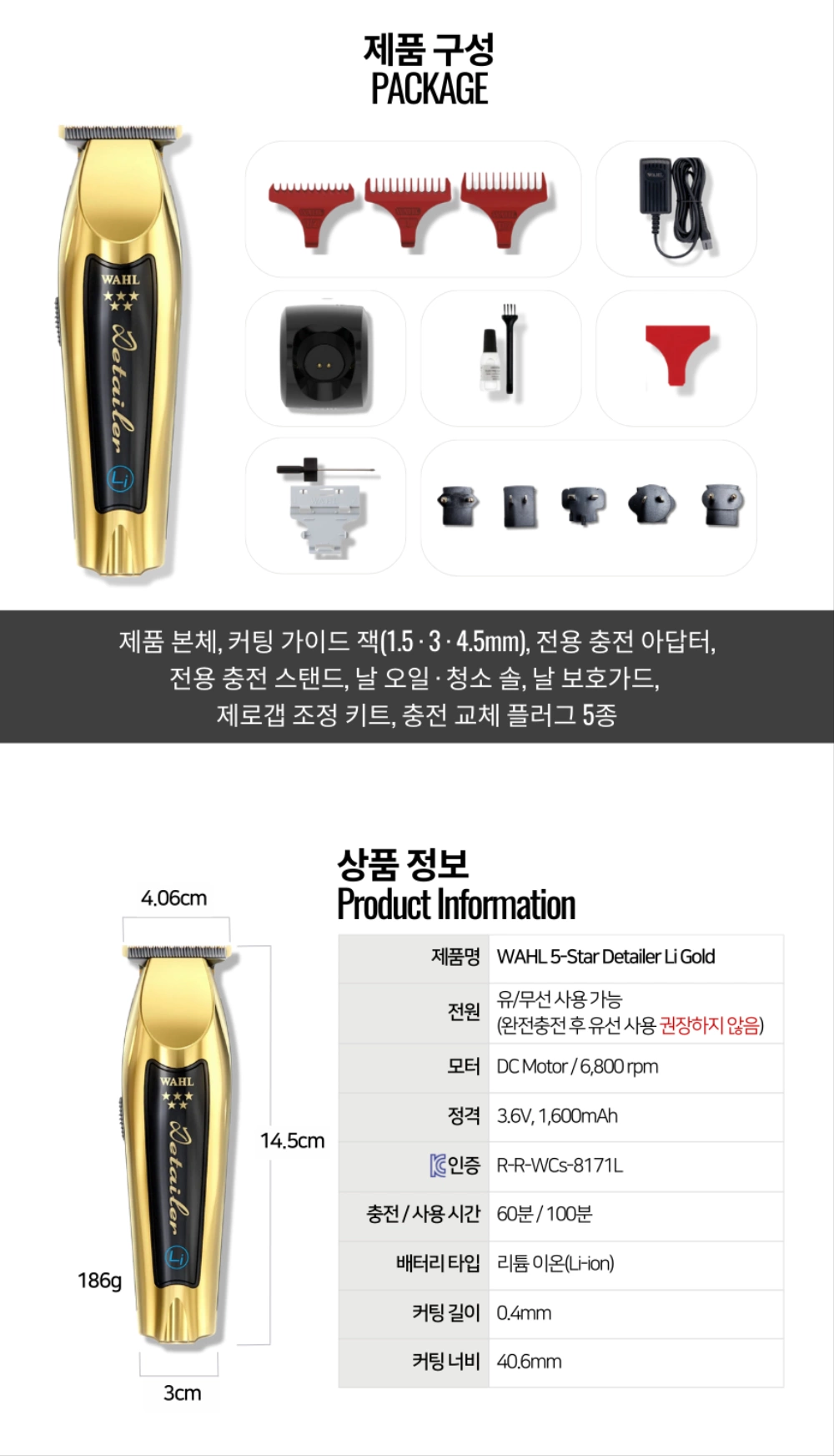 - [바리깡] WAHL 왈 디테일러 골드 무선 트리머