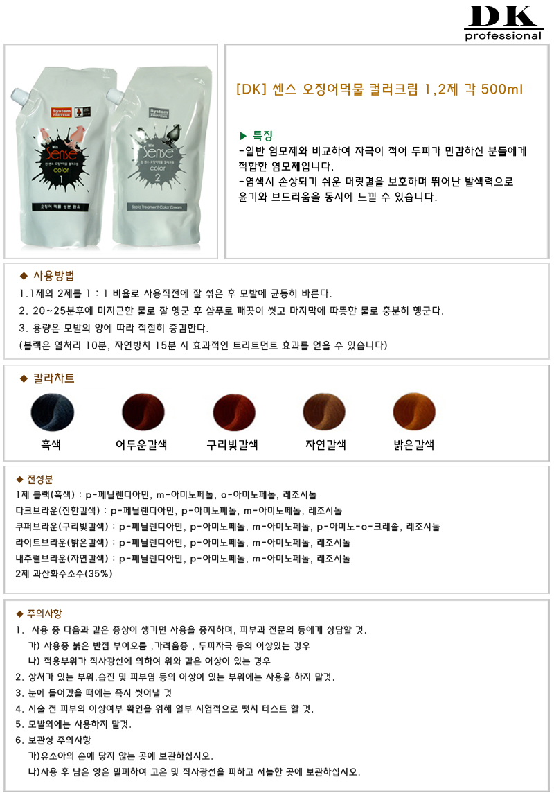 - [염모제] DK 디케이 센스 오징어먹물 컬러크림 1,2제 각 500ml