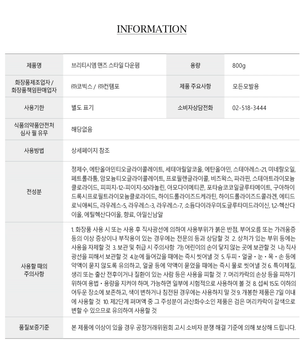 - ★5+1★ [펌제] 브리티시엠 맨즈 스타일 다운펌 800g (대용량)